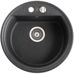 Marmorin Vask 450 Granit Evye 1 Gözlü Damlalıksız tezgah üstü Yuvarlak Siyah