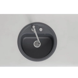 Marmorin Kova 500 Granit Evye 1 Gözlü Damlalıksız Tezgah Üstü Yuvarlak Evye Siyah